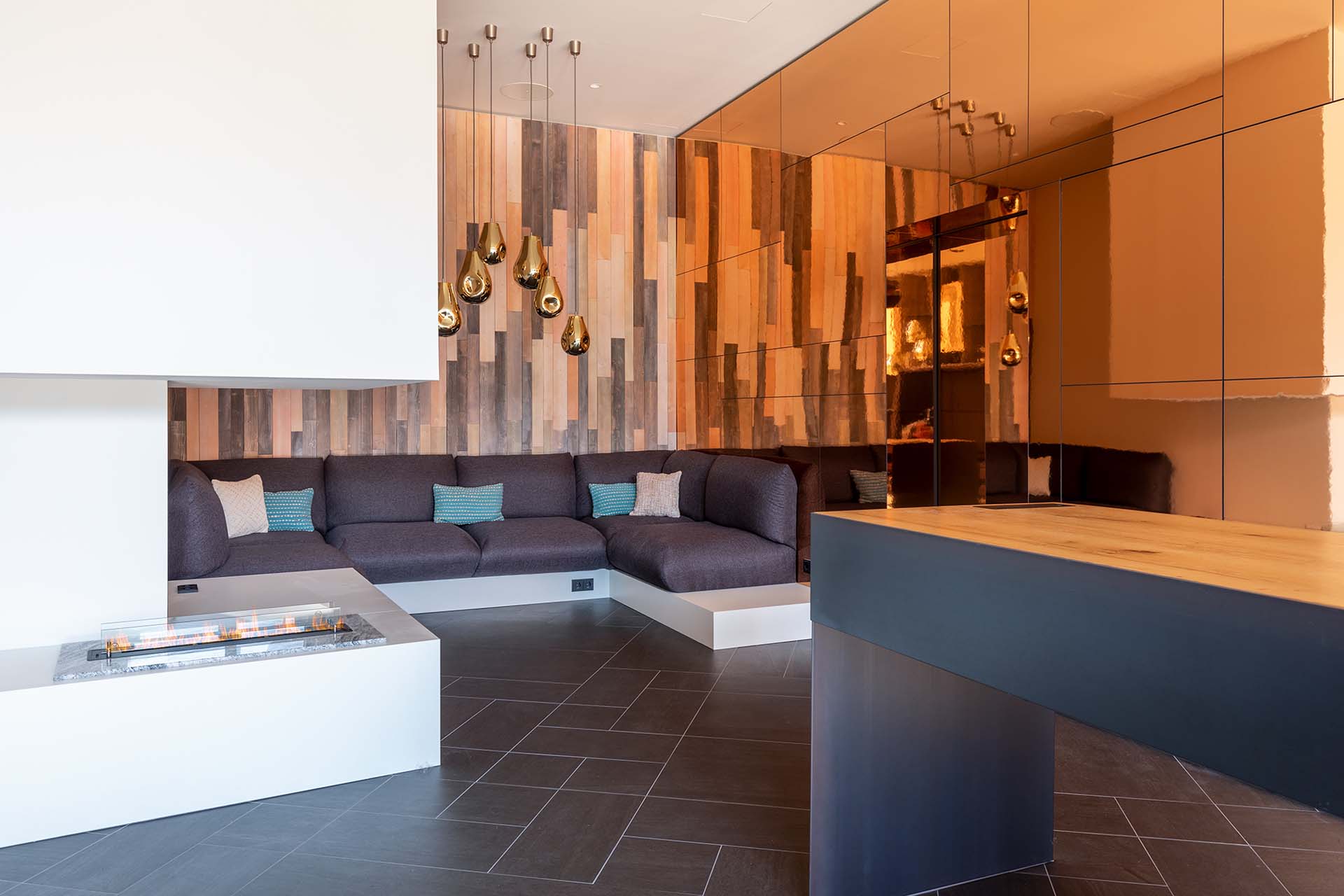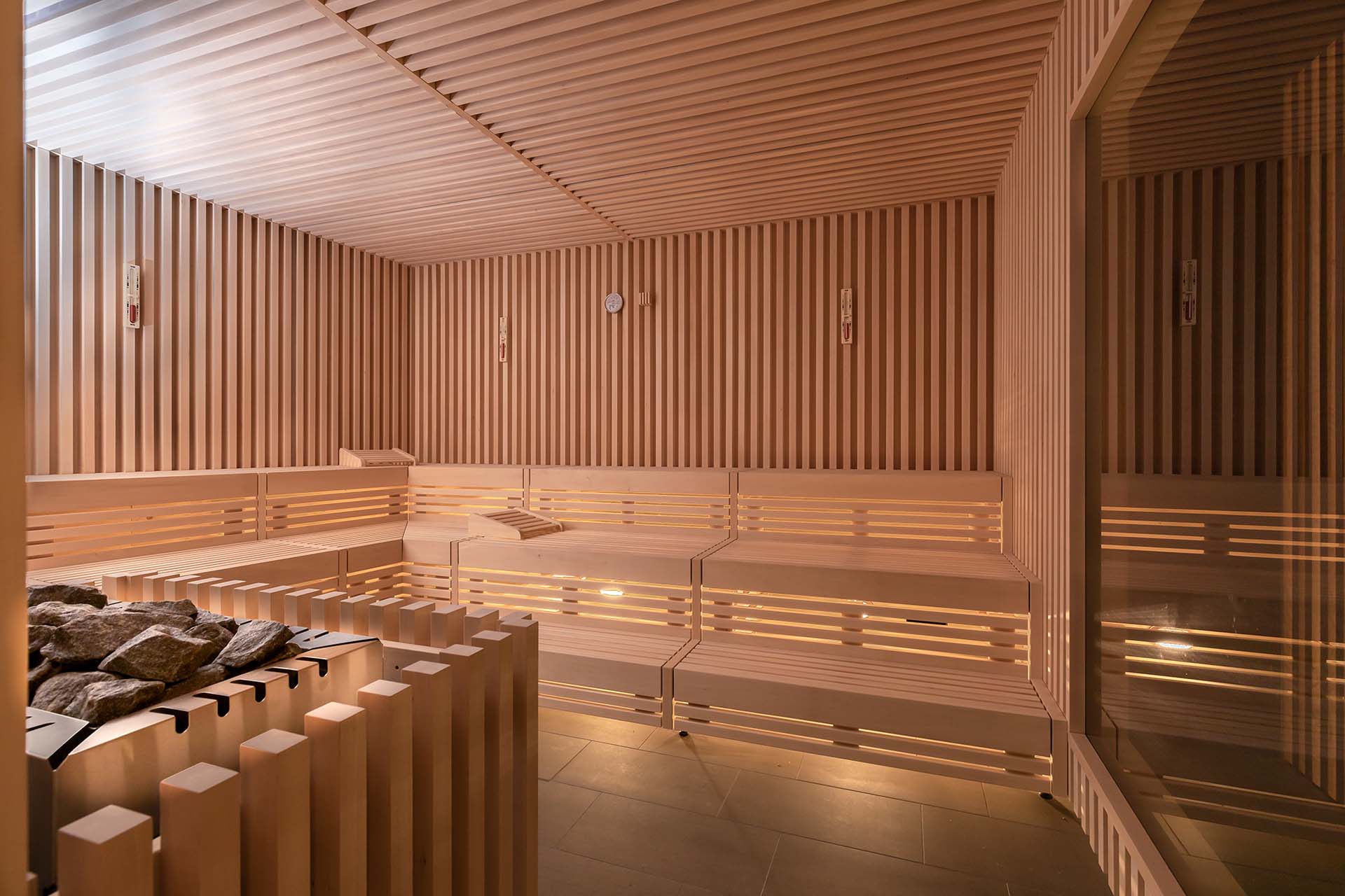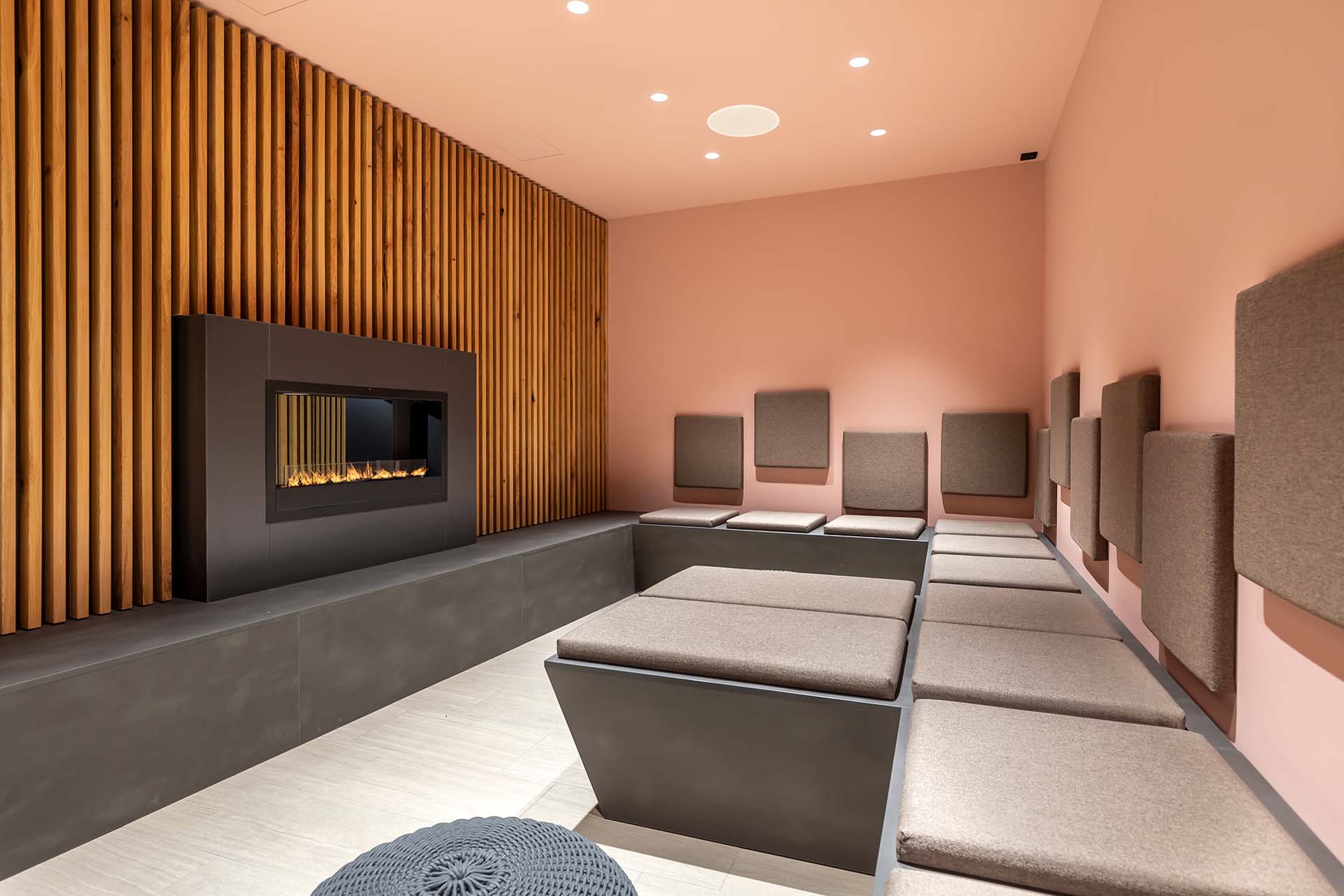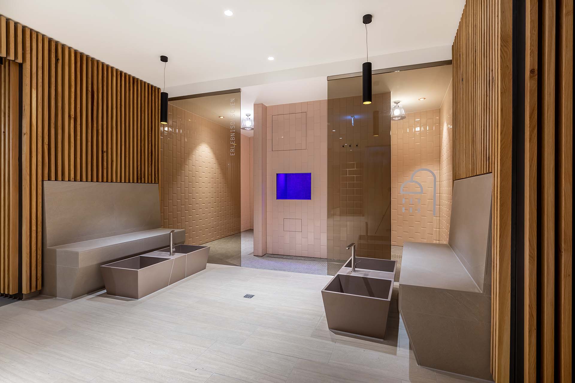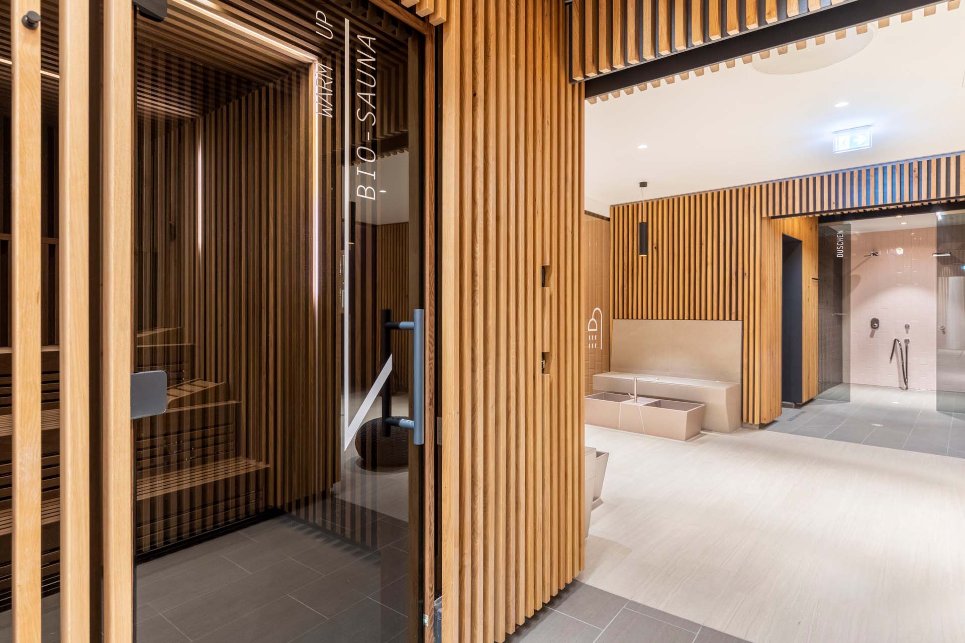Die Tischlerei Welke hat die Ausstattung des Eingangsbereiches mit Rezeption, Lobby und Kaminlounge, des SPA-Bereiches mit Sauna und Ruhezone sowie des Sonnendecks auf der Dachterrasse nach den Bauplänen der Architekten umgesetzt.