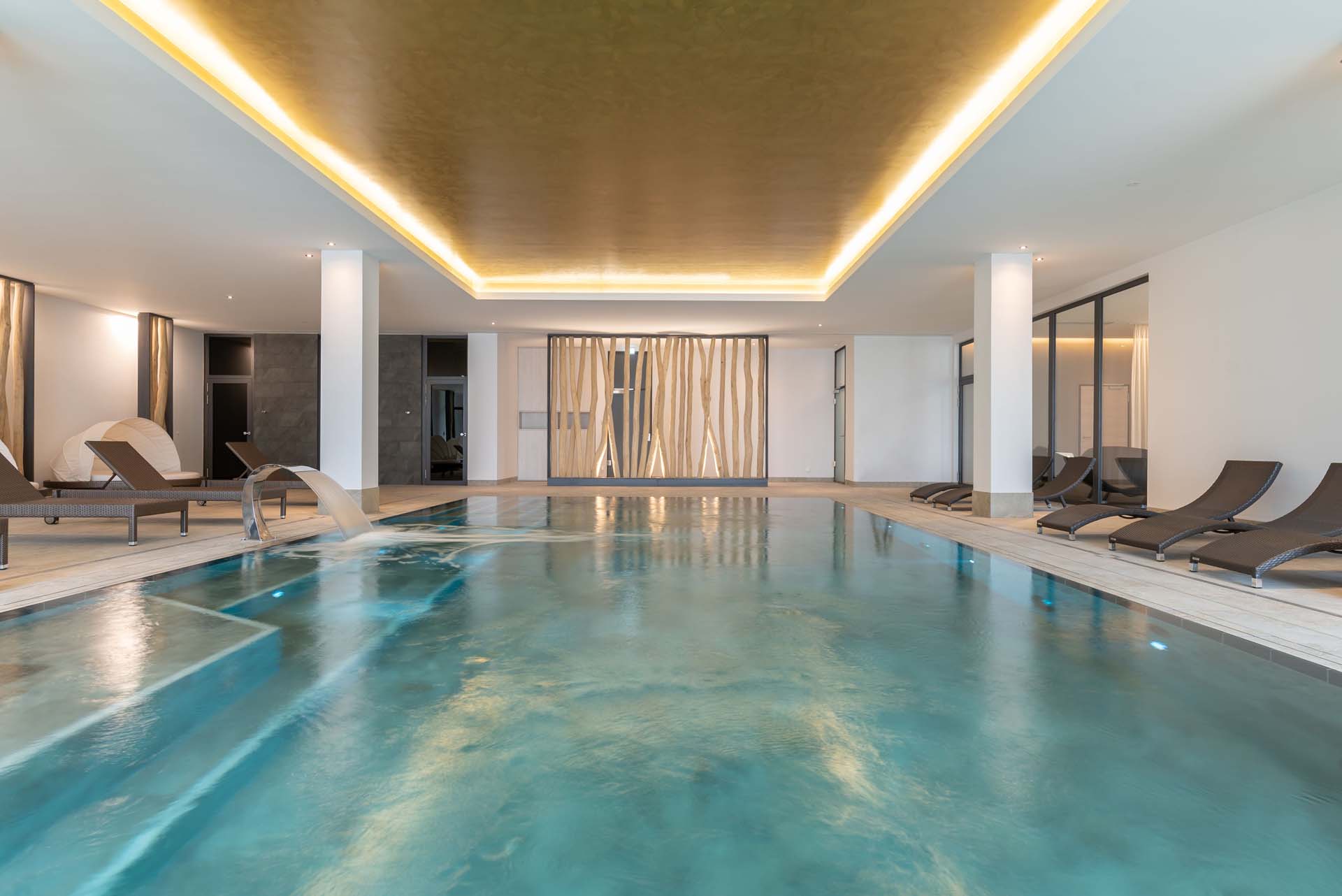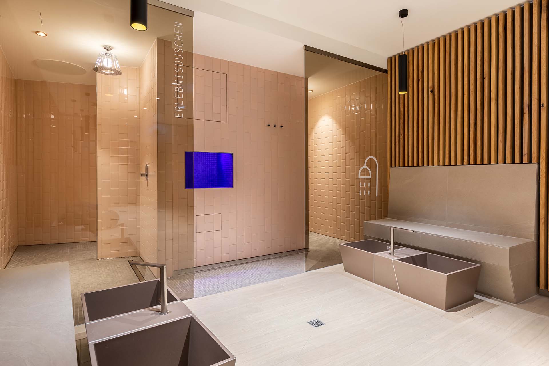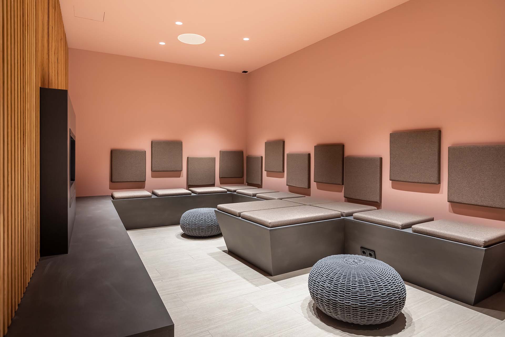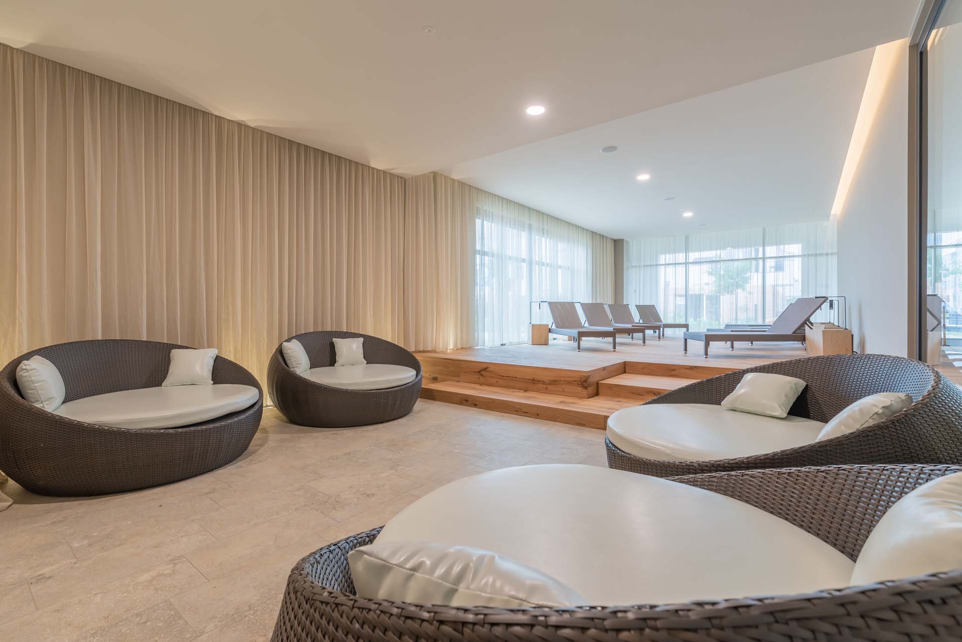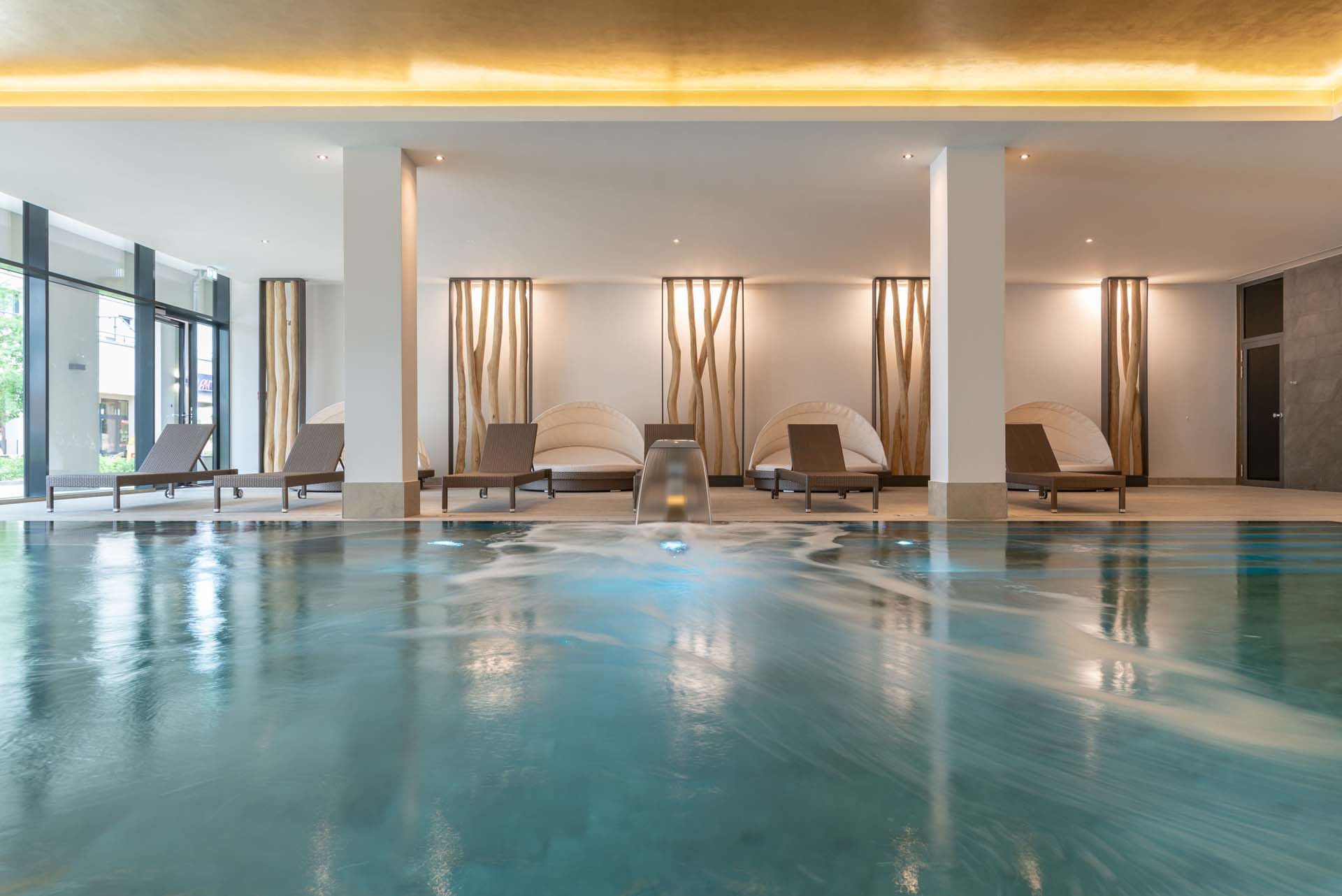 Die Tischlerei Welke hat die Ausstattung des Eingangsbereiches mit Rezeption, Lobby und Kaminlounge, des SPA-Bereiches mit Sauna und Ruhezone sowie des Sonnendecks auf der Dachterrasse nach den Bauplänen der Architekten umgesetzt.